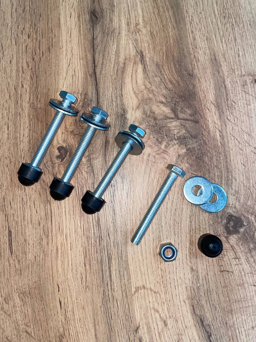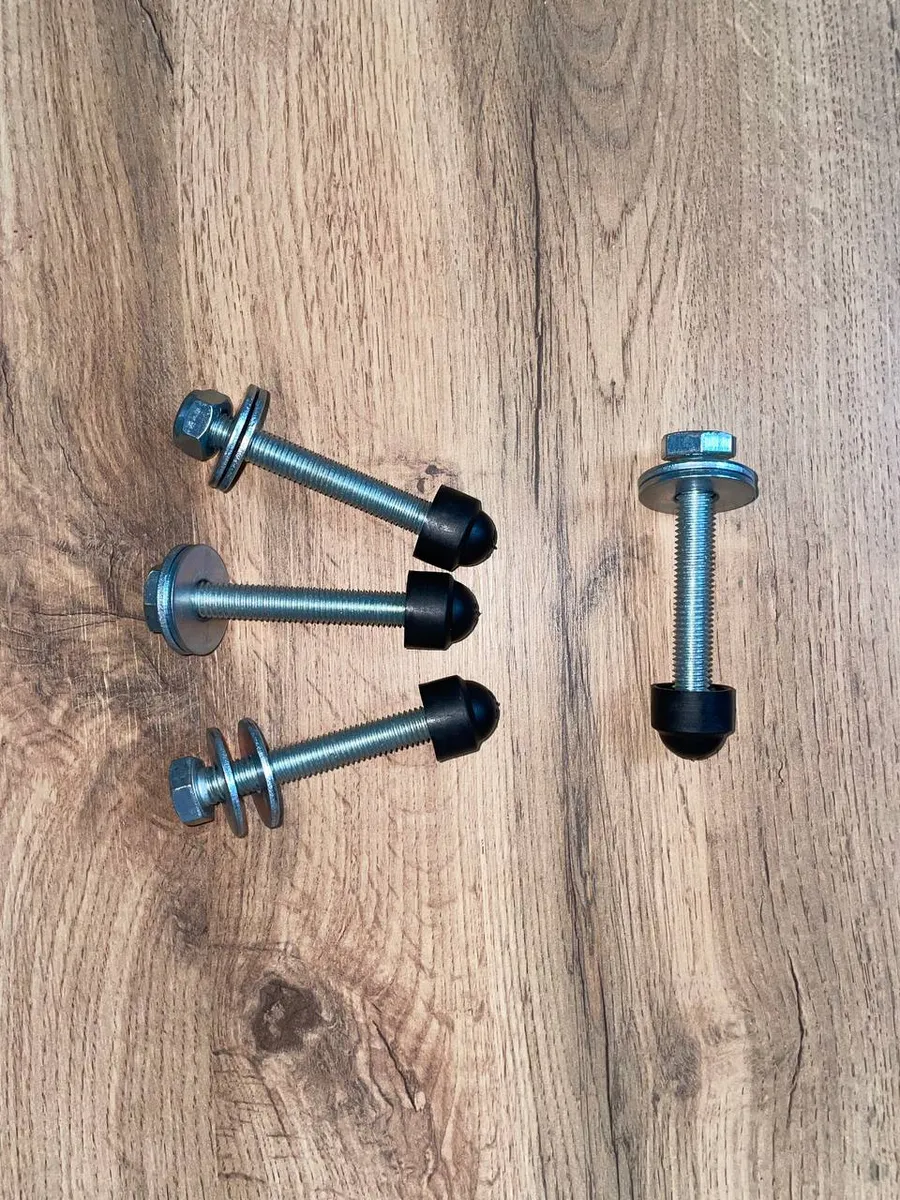 Набор для монтажа подвесов качели-прочные и надежные элементы для безопасной установки. В комплект входят 4 болта М10/70, с надежными гайками,усиленными шайбами и защитными колпачками,обеспечивающими долговечность и устойчивость конструкции.