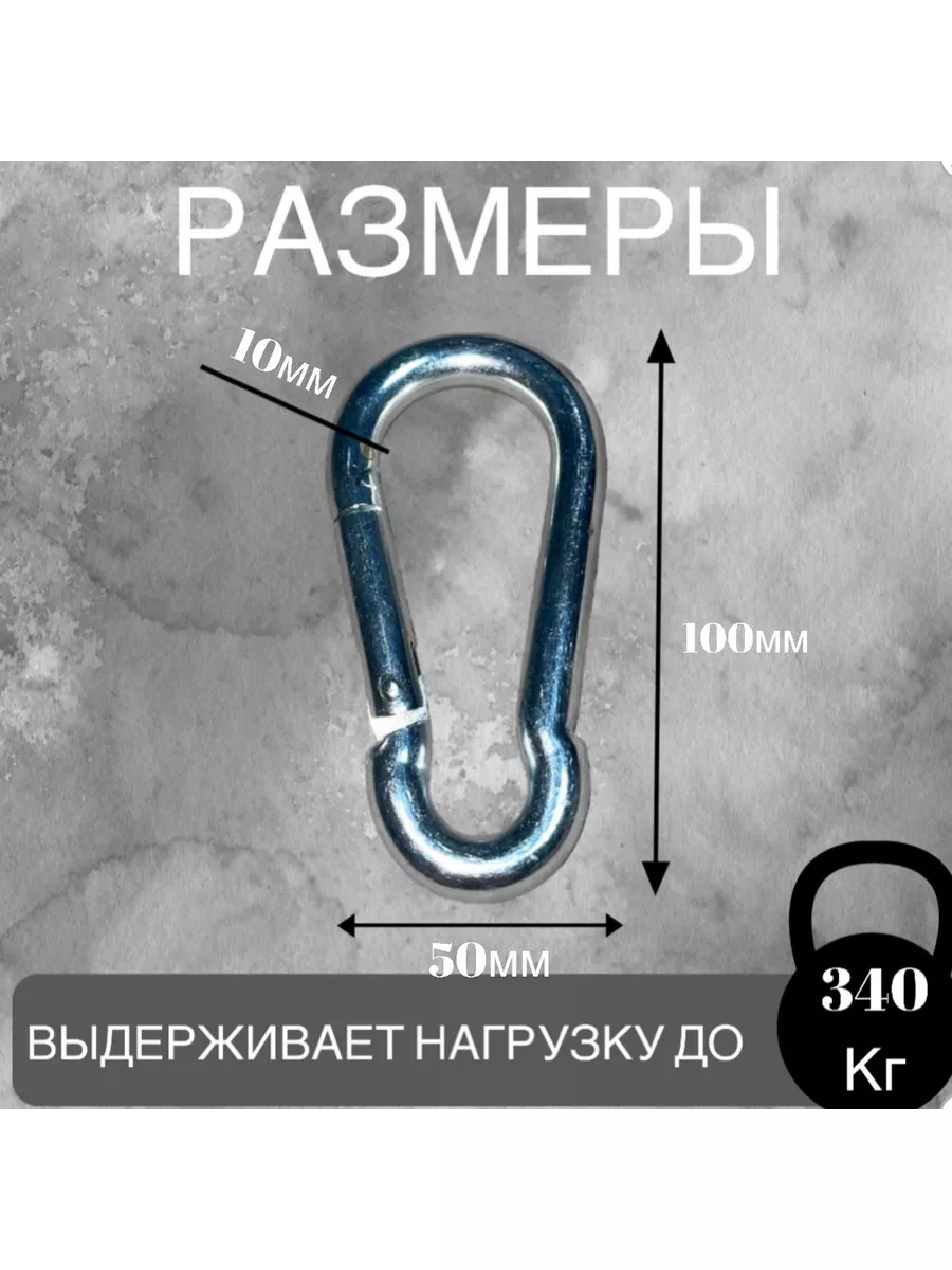 Карабин изготовлениз оцинкованой стали,такие карабины имеютвысокую износостойкость и защиту от коррозии, что продлевает их срок службы даже в условиях повышенной влажности.